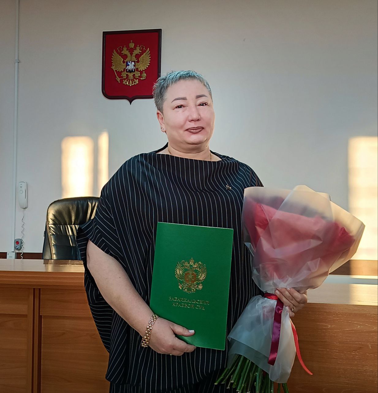 В соответствии с постановлением Законодательного Собрания Забайкальского края от 29.10.2025 № 249 Тихонова Анна Федоровна назначена на должность мирового судьи судебного участка № 26 Сретенского судебного района Забайкальского края. С 2018 года работала помощником судьи в Центральном районном суде г. Читы. Коллектив Центрального районного суда г. Читы в торжественной обстановке поздравил Тихонову Анна Федоровну с новым назначением. В адрес Анны Федоровны прозвучали пожелания дальнейших успехов в деятельности по осуществлению правосудия. Забайкальским краевым судом за успешное и добросовестное исполнение должностных обязанностей Анне Федоровне объявлена благодарность. А.Ф. Тихонова имеет большой юридический стаж, до работы в суде осуществляла профессиональную деятельность в следственных органах МВД России и в службе судебных приставов. ![]() Пресс-служба Центрального районного суда г. Читы |